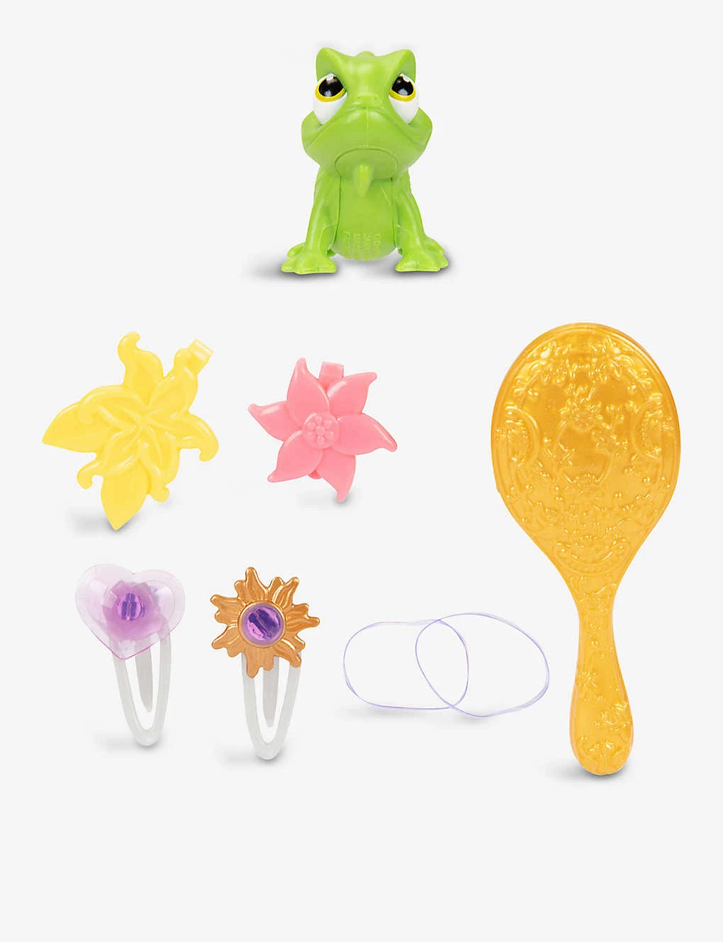 - Includes: 1 Rapunzel doll, 1 doll outfit, 1 doll tiara, 1 hair brush, 4 hair clips, 2 elastic bands, 1 Pascal figure